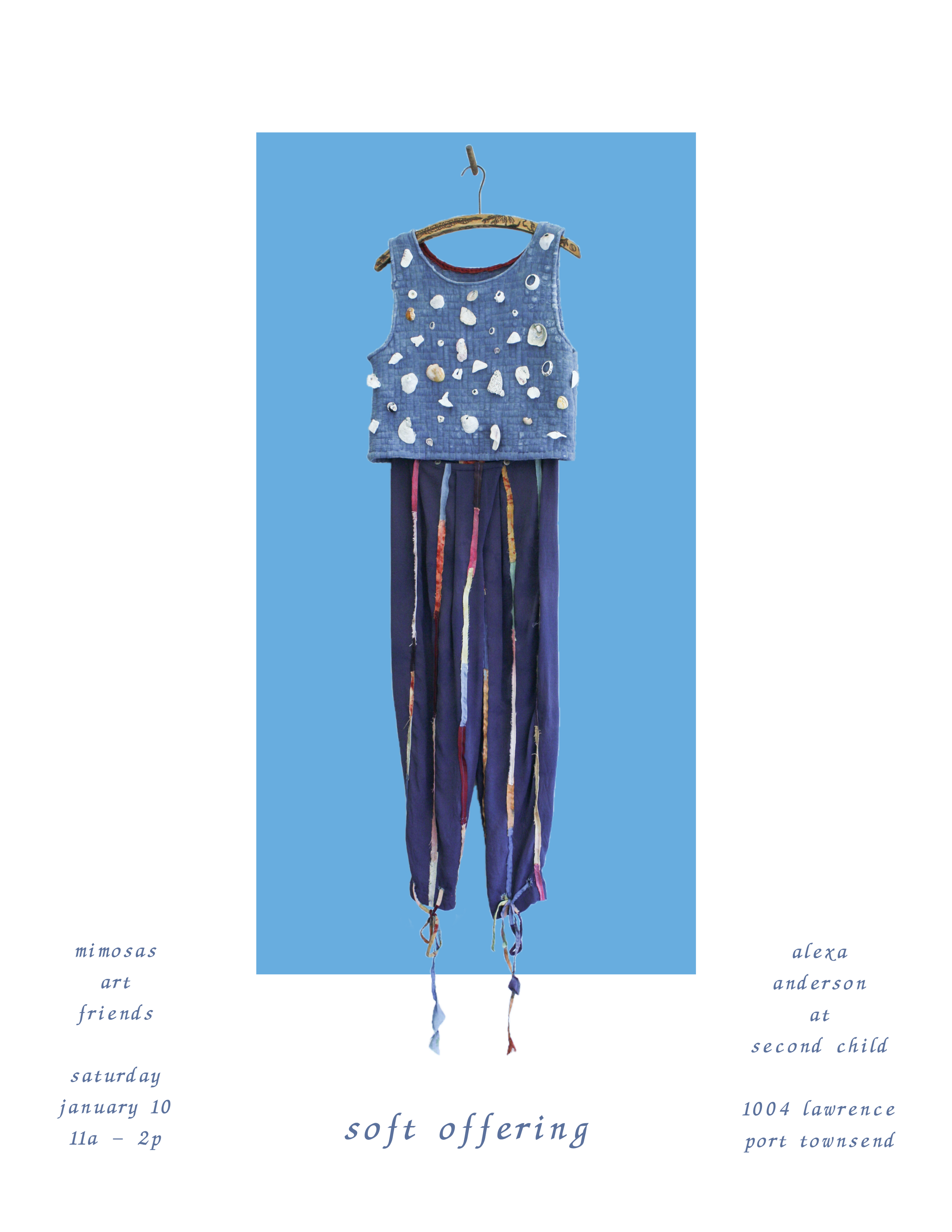 Join us for the closing reception of Soft Offering, at Second Child in Port Townsend, Washington on Saturday 1/10 from 11am-2pm. All are welcome.